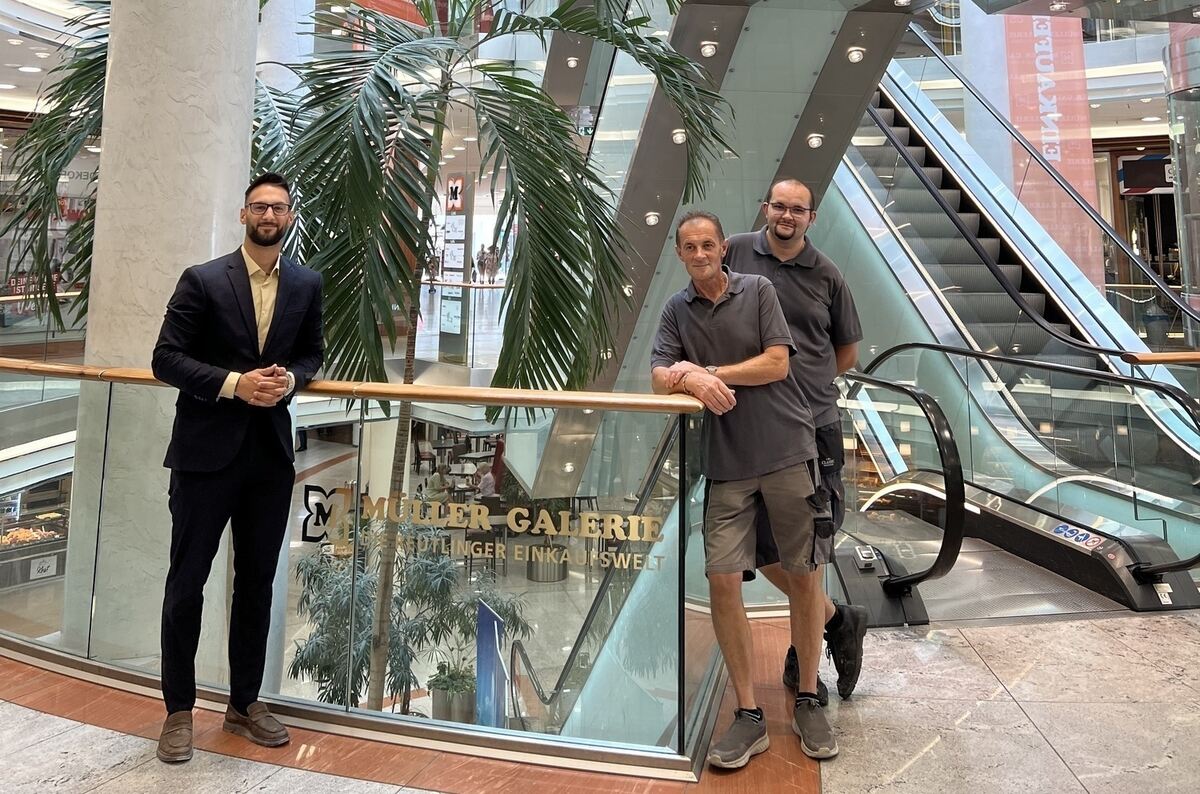 Center-Manager Roberto Lauria (von links) wagt mithilfe der beiden Haustechniker Erich und Patrick Braun den Umbau der Müller-Galerie bei laufendem Betrieb.