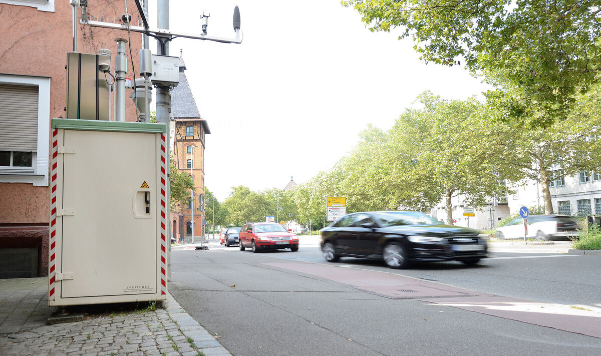 Wegen ihrer Lage in einer Nische umstritten: die Luftmessstelle Lederstraße-Ost in Reutlingen.