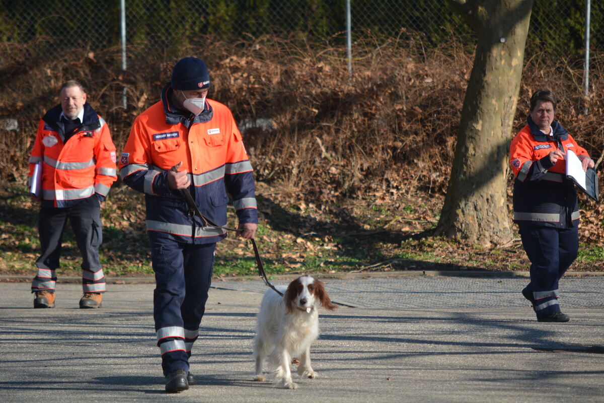Ein Großaufgebot von Einsatzkräften, darunter Polizei, Feuerwehr, Malteser, DRK und Bergwacht durchkämmt am Samstag stundenlang das Waldgebiet auf Höhe der Gönninger Seen. Auch ein Polizeihubschrauber und Flächensuchhunde sind im Einsatz. Um 15.30 Uhr wird die Suche erfolglos abgebrochen.
