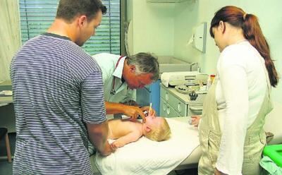 Till hat zum ersten Mal 40 Grad Fieber. Die besorgten Eltern sind mit dem 15-monatigen Bub in die Notfallambulanz gekommen, wo ihn Kinderarzt Dr. Arnold Rotar untersucht.