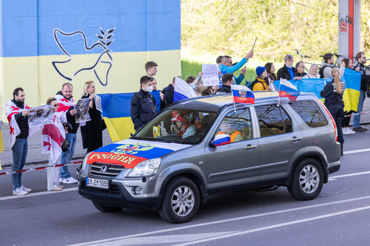 Es soll sich laut Ordnungsamt um einen »geschlossenen Konvoi« handeln, der von einem Polizeifahrzeug angeführt wird. Hupen und Sirenen sind untersagt, ebenso Musik aus den Autos während der Demo. Verboten sind die Symbole Z oder V, wie sie im Ukraine-Krieg auf Militärfahrzeugen der russischen Streitkräfte zu sehen sind, ebenso Bekleidungsgegenstände, die erkennbar Bezüge zu Verbänden, Organisationen und (para-)militärischen Gruppierungen Russlands, der ehemaligen Sowjetunion, russischen Teilrepubliken oder der Ukraine haben. (GEA)