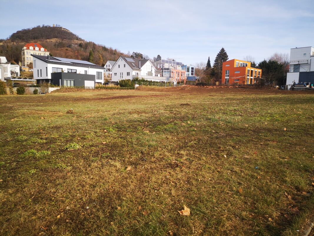 Hier Gewerbegebiet, dort Wohngebiet: Auf der Freifläche im Betzenried der August-Lämmle- Straße darf ein Unternehmer bauen, zum Missfallen der Anwohner. FOTOS: CONZELMANN