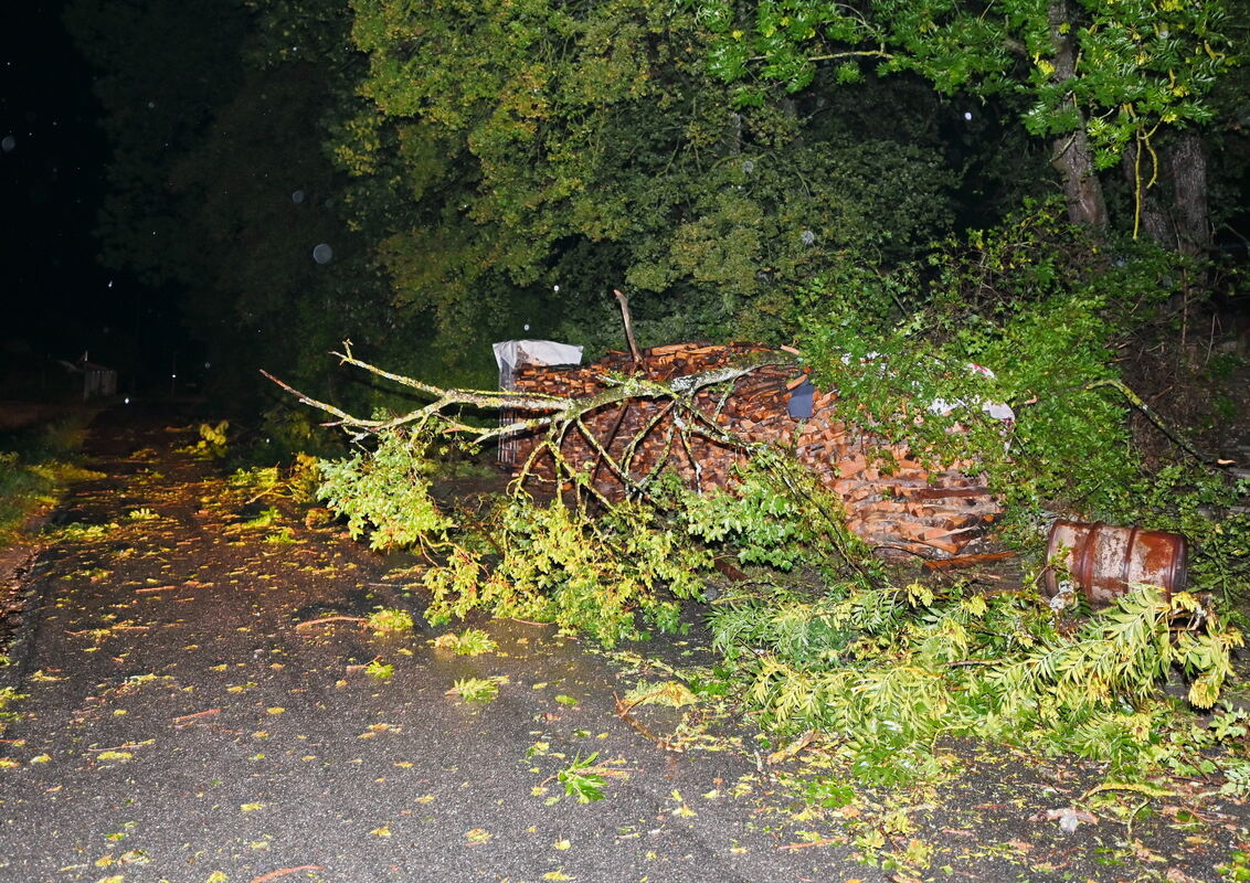 In der Zeit zwischen 20.45 Uhr und 22.30 Uhr gingen alleine in der Notrufzentrale des Polizeipräsidiums Reutlingen über 300 Anrufe ein, berichtet Polizei-Pressesprecher Michael Schaal. Es kam zu etwa 240 wetterbedingten Einsätzen. Überwiegend handelte es sich hierbei um umgestürzte Bäume, ausgehobene Schachtdeckel, herabgefallene Äste, überflutete Fahrbahnen und Keller sowie zahlreiche Verkehrsunfälle. Weiterhin kam es in einigen Orts- und Stadtgebieten zu zeitweiligen lokalen Störungen und Ausfällen des Stromnetzes. Am Flughafen Stuttgart musste der Betrieb zeitweise komplett eingestellt werden.