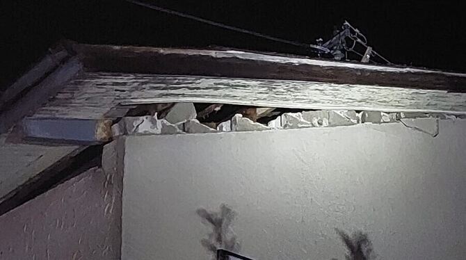 In Reutlingen Gönningen wurde in einem landwirtschaftlichen Gebäude Teile des Dachs abgedeckt und eindringendes Wasser gefährden die Statik des Gebäudes