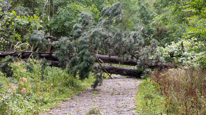 Der Gewittersturm hat auch im Wald starke Spuren hinterlassen. Im gesamten Reutlingen Kreisgebiet, insbesondere in den Bereichen Engstingen, Sonnenbühl und St. Johann, sind auf Grund der hohen Windgeschwindigkeiten Bäume umgestürzt oder in ihrer Festigkeit gelockert worden, heißt es in einer Pressemitteilung. So können sie jederzeit noch plötzlich umstürzen. Vielerorts sind Bäume auch über Waldwege gestürzt, sodass diese unpassierbar geworden sind. Aufgrund der aktuellen Lage, empfiehlt das Kreisforstamt den Wald in den nächsten Tagen möglichst zu meiden. Das gilt ganz besonders dann, wenn es weitere starke Winde oder gar Stürme gibt. »In Ihrem eigenen Interesse bitten wir Sie, diese Warnung ernst zu nehmen«, teilt das Kreisforstamt mit. Im Rahmen der zur Verfügung stehenden Möglichkeiten, werden die Waldwege schnellstmöglich kontrolliert und umgestürzte Bäume beseitigt, damit sie wieder möglichst gefahrlos genutzt werden können.
