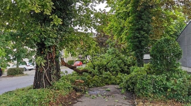 KREIS REUTLINGEN. Die schweren Unwetter in Baden-Württemberg sorgten auch in der Region rund um Reutlingen für unzählige Einsätze von Polizei und Feuerwehr. »Bei uns geht es wirklich rund«, sagte ein Polizist am Dienstagabend in Reutlingen. Tote seien nicht gemeldet worden. Es habe aber wegen des schweren Sturms mehrere Verkehrsunfälle gegeben. »Aktuell kann ich ihnen nicht mehr sagen. Es wird dauern, bis wir einen Überblick haben«, sagte der Polizist in der Nacht. Am Morgen danach sprach die Reutlinger Polizei von mehr als 100 Einsätzen.