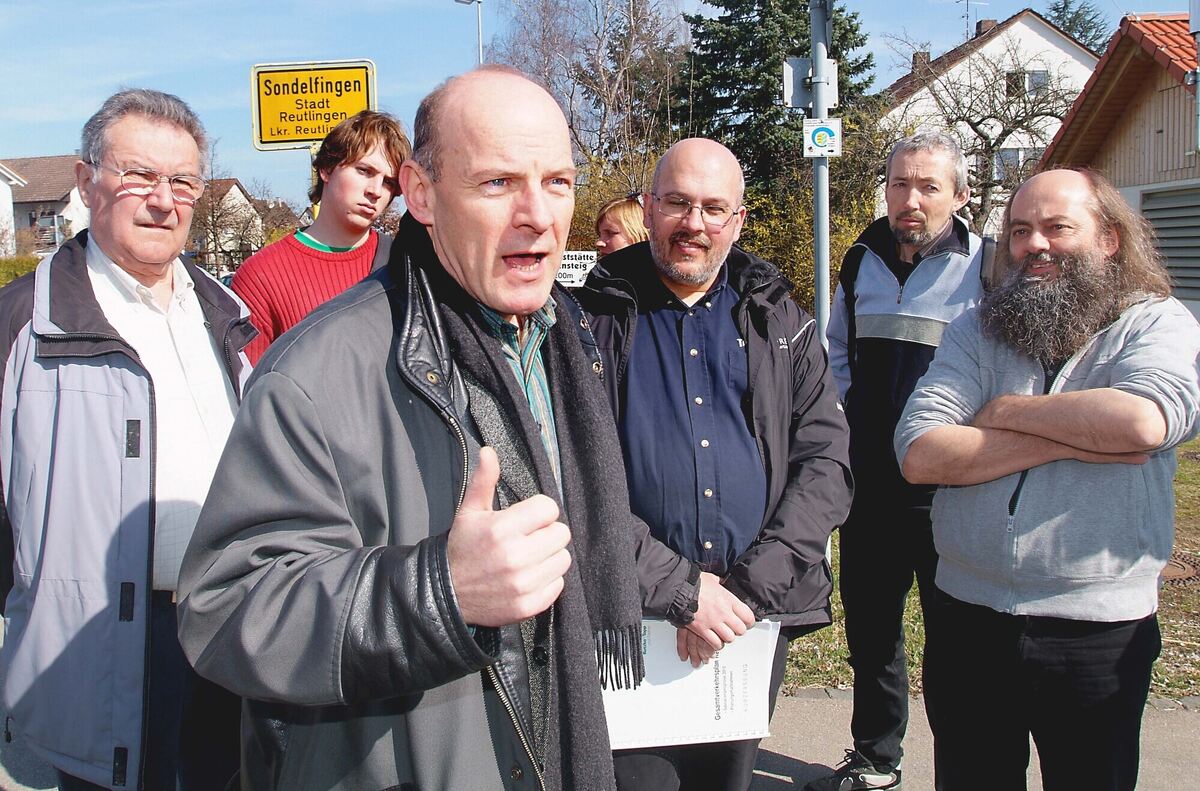 Blick zurück: Winfried Hermann (Dritter von links) im März 2007. Auf Einladung der Reutlinger Grünen war der damalige Bundestagsabgeordnete zu einem Ortstermin mit Dietwegtrassengegnern gekommen. ARCHIVFOTO: TRINKHAUS