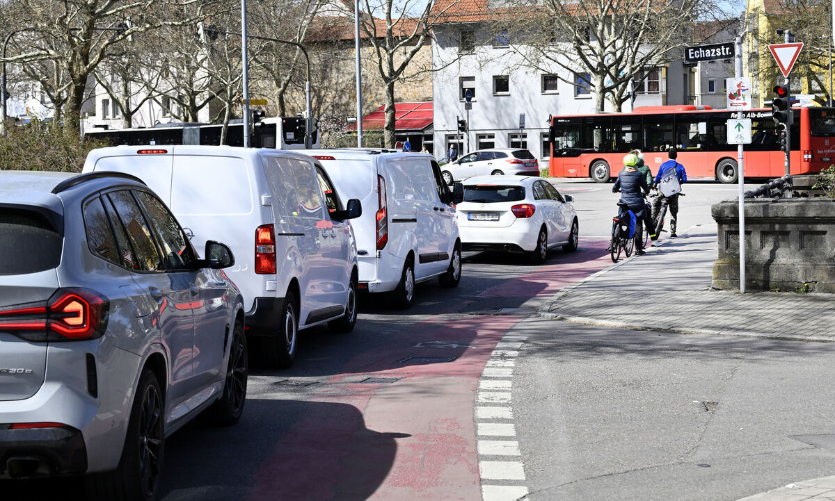 Stadteinwärts bekommen Radler am Lindachknoten den bisher weitgehend unbenutzten Gehweg zugeschlagen.