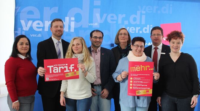 Die Gewerkschaft verlangt sechs Prozent mehr Geld, mindestens aber 200 Euro pro Monat mehr. Außerdem sollen die Gehälter für Nachwuchskräfte um 100 Euro monatlich steigen, die Bedingungen der bisher nicht tariflich geregelten Ausbildungs- und Praktikumsverhältnisse festgelegt und der Nachtarbeitszuschlag in Krankenhäusern auf 20 Prozent angehoben werden. In den fünf Landkreisen sind circa 85 000, in Reutlingen ungefähr 9 500 Beschäftigte betroffen. (jüsp)