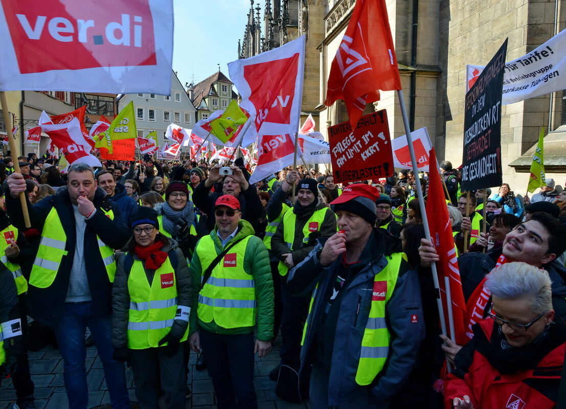 REUTLINGEN. Die Mülltonnen nicht geleert, alle Kindertageseinrichtungen geschlossen: In Reutlingen sind die Auswirkungen des ganztägigen Warnstreiks von Beschäftigten aus dem öffentlichen Dienst am heutigen Dienstag deutlich zu spüren gewesen. Über 1.000 Streikende aus den Landkreisen Reutlingen und Tübingen waren dem Aufruf der Gewerkschaft Verdi gefolgt und hatten sich am Mittag zu einer Kundgebung am Reutlinger Weibermarkt versammelt.