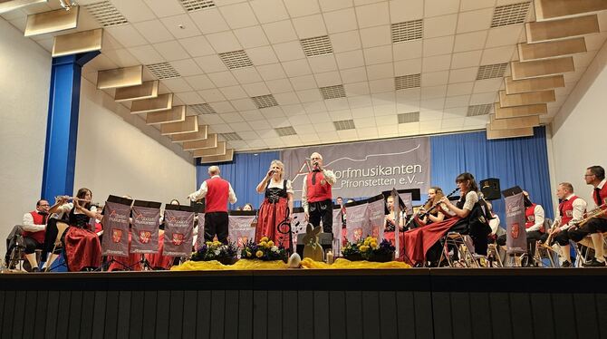 Viel Beifall erhielten die Interpreten beim volkstümlichen Abend der Albdorfmusikanten Pfronstetten. FOTO: THUMM