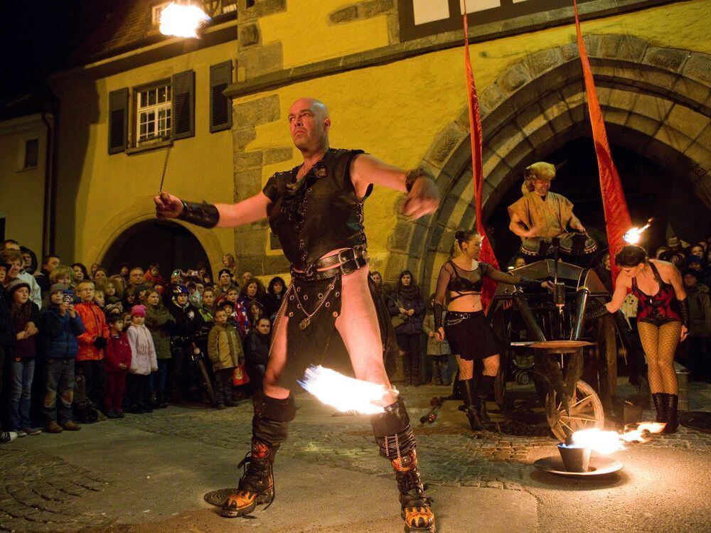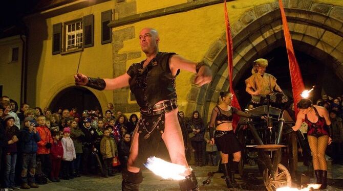Die Gruppe Pila Accendi spielte mit dem Feuer. FOTO: SCHREIER