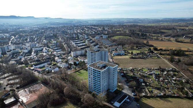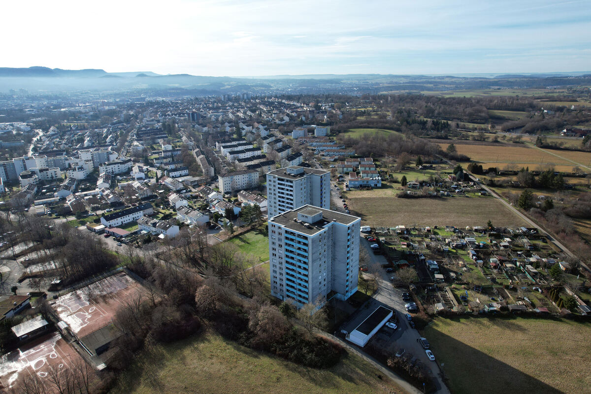 Storlach von oben: Im Vordergrund die Hochhäuser in der Tannenberger Straße.