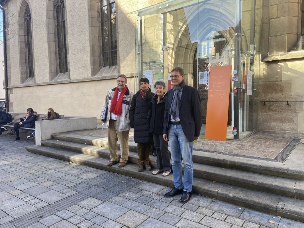 Alles bestens vorbereitet für die 25. Auflage der Vesperkirche (von links): Pfarrer i. R. Jörg Mutschler, Andrea Gaiser und Gertrud Schief vom Leitungsteam mit Dr. Joachim Rückle, Geschäftsführer des Diakonieverbands.