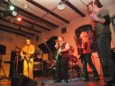 Live eine Stimmungsband, im Video bananenversessen, die Soulhossas (von links): Manuel Hubatschek (Keyboard), Felix Schweigert (Gitarre), Harald Beck (Gesang). Mathias Stöckl (Schlagzeug), Biggi Neugebauer (Gitarre) und Michael Bach (Bass).