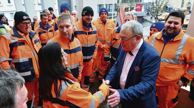 REUTLINGEN. Eigentlich hätte er gerne seinen sechzigsten Geburtstag im bescheidenen Rahmen gefeiert. Nun ist aus dem kleinen Stehempfang halt ein großer Bahnhof geworden – das Presseamt hat festgelegt, dass solch ein runder Geburtstag einfach standesgemäß zu begehen sei: Reutlingens OB Thomas Keck ist am Donnerstag im und am Rathaus von vielen Gästen beehrt worden. Was keinen wundern dürfte, da der volksnahe Schultes nicht nur Chef von über 2.600 städtischen Mitarbeitern ist – von denen alle eingeladen waren, und zahlreiche Abteilungen während der fünfstündigen Feier in Schichten ihre Aufwartung machten.