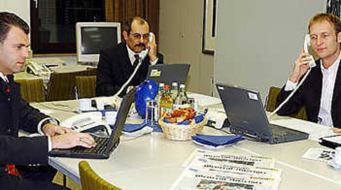 GEA-Telefonaktion: Fragen zum Thema Autoversicherung an die Experten (von links) Matthias Gaier, Gerd Göbel und Bernd Schenzle.