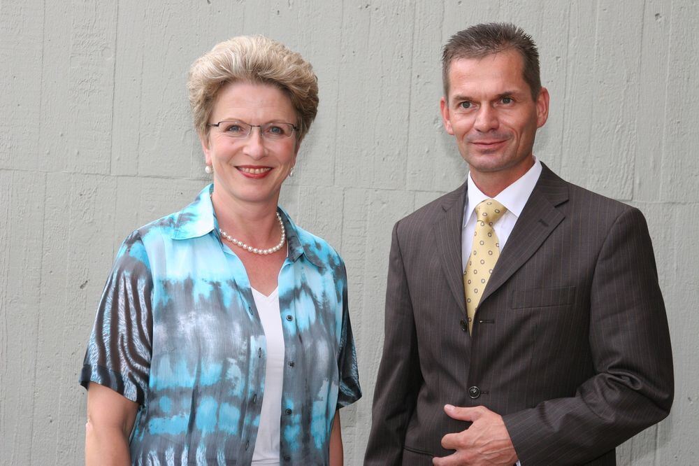 Oberbürgermeisterin Barbara Bosch mit Volker Schmidtke, dem frisch gekürten neuen Geschäftsführer der Stadthalle.