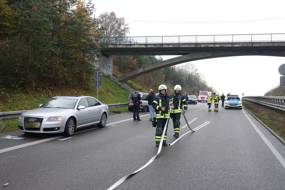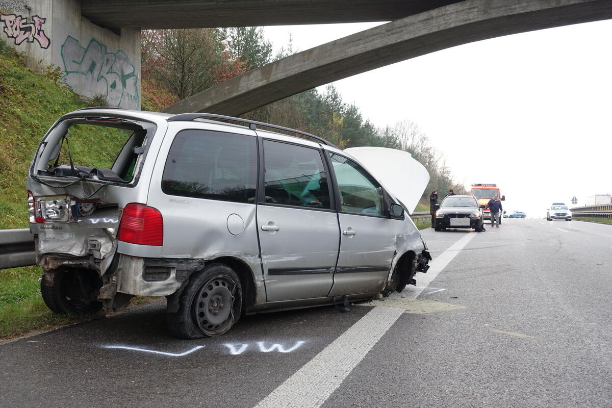 Der Mann war gegen 9.10 Uhr mit seinem VW Sharan hinter einem BMW eines 30-Jährigen auf dem Beschleunigungsstreifen von Sondelfingen herkommend auf die B 28 in Richtung Metzingen unterwegs. Noch auf Höhe des Beschleunigungsstreifens setzte der 43-Jährige zum Überholen an, wobei er auf den linken Fahrstreifen wechselte. Dabei übersah er einen auf dieser Spur fahrenden VW Touareg eines 57-Jährigen. Dieser versuchte noch durch eine Notbremsung einen Unfall zu vermeiden, krachte aber trotzdem ins Heck Sharan. Durch die enorme Wucht des Aufpralls kam der Sharan ins Schleudern, nach rechts von der Fahrbahn ab und knallte dort in die Leitplanken. Durch umherfliegende Trümmerteile wurden der BMW und ein auf der B 28 fahrender Audi A8 beschädigt. Bei der Kollision wurden der Unfallverursacher und seine 41Jahre alte Beifahrerin leicht verletzt und vom Rettungsdienst zur Untersuchung und Behandlung ins Krankenhaus gebracht. Der Sharan und der Touareg waren nach dem Unfall nicht mehr fahrbereit und mussten abgeschleppt werden. Während der Unfallaufnahme, der Bergungsmaßnahmen und der nachfolgenden Reinigungsarbeiten musste die Bundesstraße in Richtung Metzingen bis etwa elf Uhr voll gesperrt werden, was trotz der eingerichteten Umleitung zu erheblichen Verkehrsbehinderungen führte. (pol)