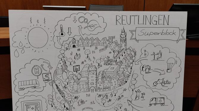 Visualisiert von Forumsteil- nehmerinnen und Teilnehmern: die Vision 2029 für Reutlingen. FOTO: GLITZ