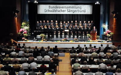Zur Eröffnung der Bundesversammlung sprach Präsident Dr. Lorenz Menz, der Ludwig-Uhland-Chor unter der Leitung von Jürgen Knöpfler umrahmte den einführenden Teil.