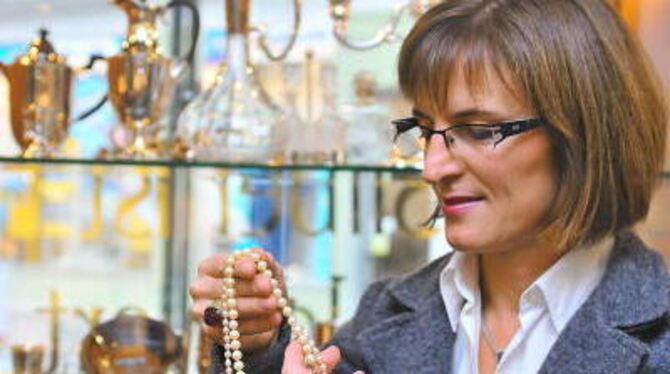 Echt oder unecht? Schmuckkennerin Annette Lachenmann kann das bei Perlen sogar heraushören und -fühlen.