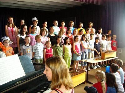 Der Chor singt ein Hoch auf seine fröhliche Jos-Weiß-Schule.