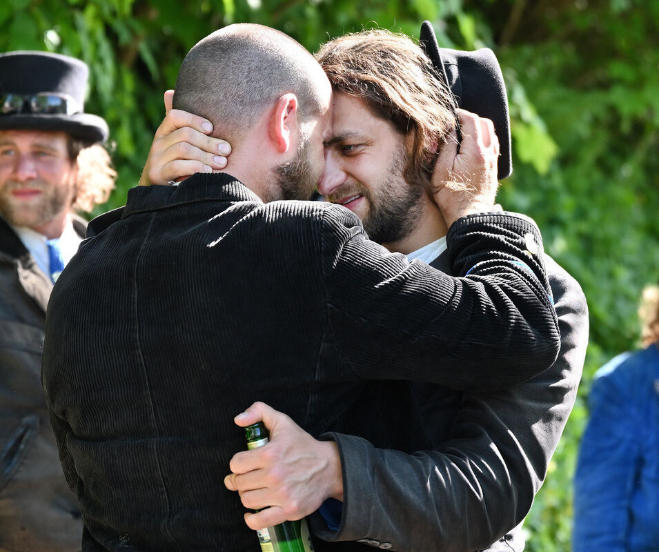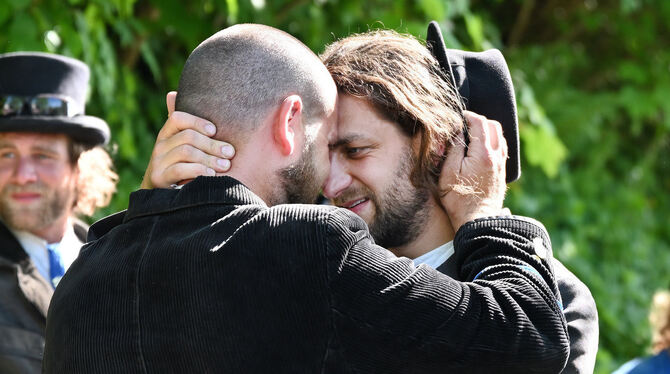 Innige Verabschiedung von Schachtbruder Yannick: Er hat Felix Kautt (rechts) im Juni vor fünf Jahren in Mittelstadt mit abgeholt und war zeitweise auch mit ihm unterwegs.