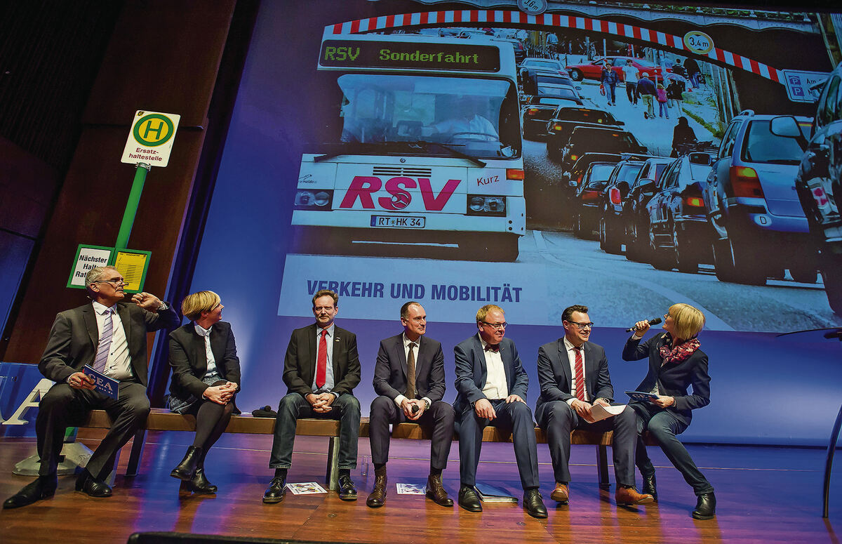 REUTLINGEN. Was wäre ein Wahlpodium ohne das Aufregerthema Verkehr? Die Fragerunde wurde passend auf ein unbequemes Bushaltestellen-Bänkchen verlegt, darüber symbolträchtig ein Schild »Nächster Halt Rathaus«. Kaum hatte Moderatorin Gisela Sämann die Reizworte Pförtnerampel, Tempo 40 auf der Lederstraße oder Fahrradstraße ausgesprochen und die Frage an CDU-Kandidat Dr. Christian Schneider über die Sinnhaftigkeit solcher Maßnahmen gerichtet, kam Stimmung auf im Saal. Das Hinweisschild »Sei schlau, umfahr den Stau« auf der B 28 ärgere ihn. Lauter Beifall, Pfiffe. Das sei als Aufforderung zu verstehen, quasi einen Bogen um die Stadt zu machen, meinte Schneider. Ein schlechtes Signal an die Bürger einer »Großstadt, die um Attraktivität wirbt und den Einzelhandel fördern will«. Er setze auf Anreize, nicht Verbote, so Schneider weiter. Noch lauter wurde der Beifall, als er als »Negativbeispiel« die Charlottenstraße nannte und dafür plädierte, die Umwandlung zur Fahrradstraße rückgängig zu machen. »Man muss auch mal den Mut haben, Dinge zu ändern, wenn sie sich nicht bewährt haben.«