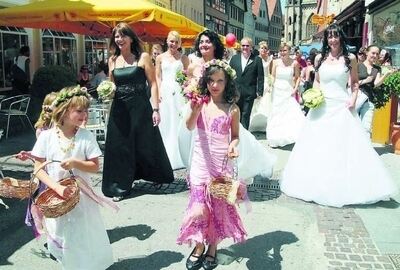 Brautschau der etwas anderen Art: Bei der ersten Open-Air-Hochzeitsschau auf der Oberen Wilhelmstraße gab's zahlreiche Anregungen für eine stilvolle Feier. Neben Brautmoden wurden auch prächtig geschmückte Festtagstafeln, Kutschen und Luxuslimousinen, Blumenarrangements, Frisuren, Trauringe und allerlei anderes Geschmeide präsentiert.