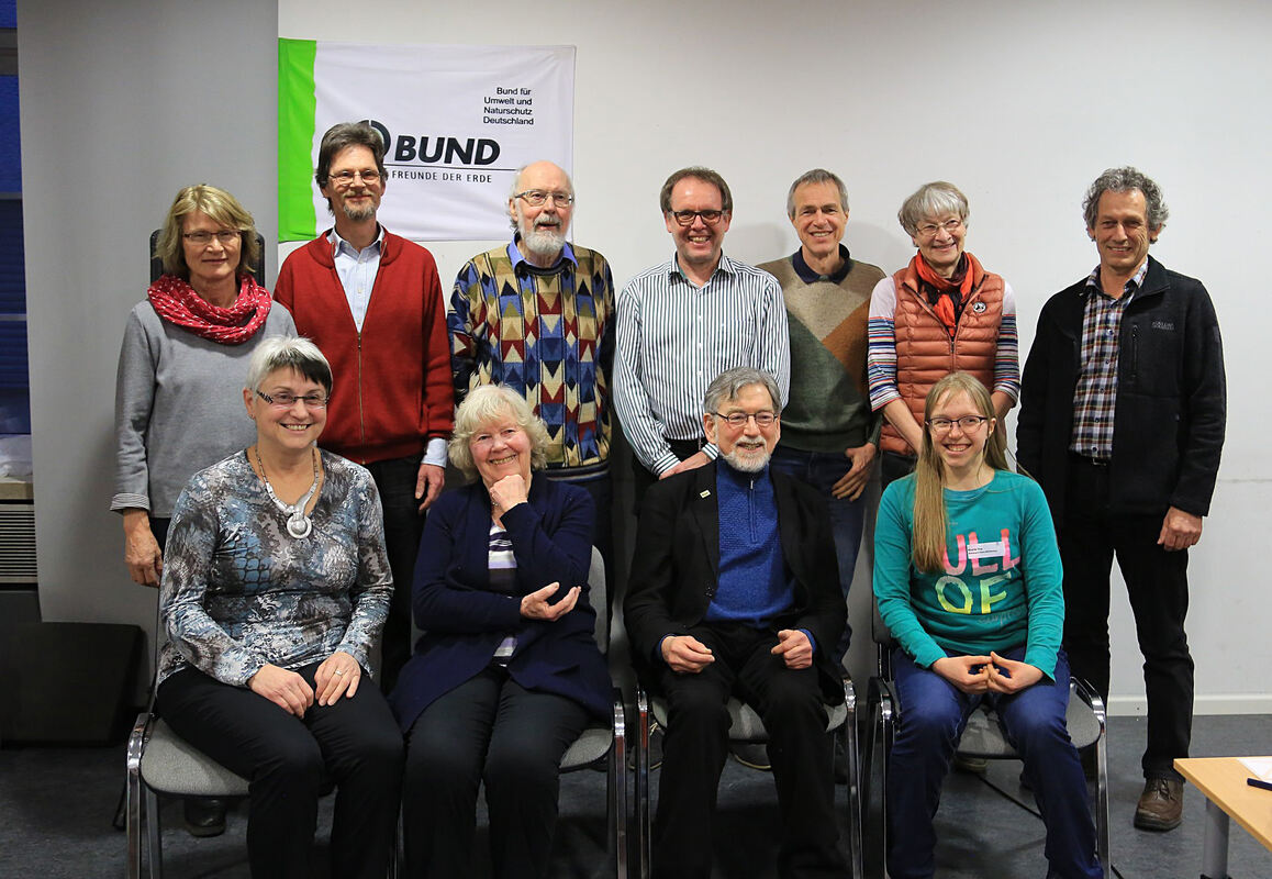 Die neue Vorstandschaft im Bild: Rotraut Meyer-Held, Joachim Reidelbach, Dr. Michael Meyer, Ulrich Schmid, Reinhard Beneken, Ingrid Jakobi, Rainer Blum (stehend von links); Petra Ege, Margit Geyer, Ira Wallet, Riccarda Hogl (sitzend von links). FOTO: BUND