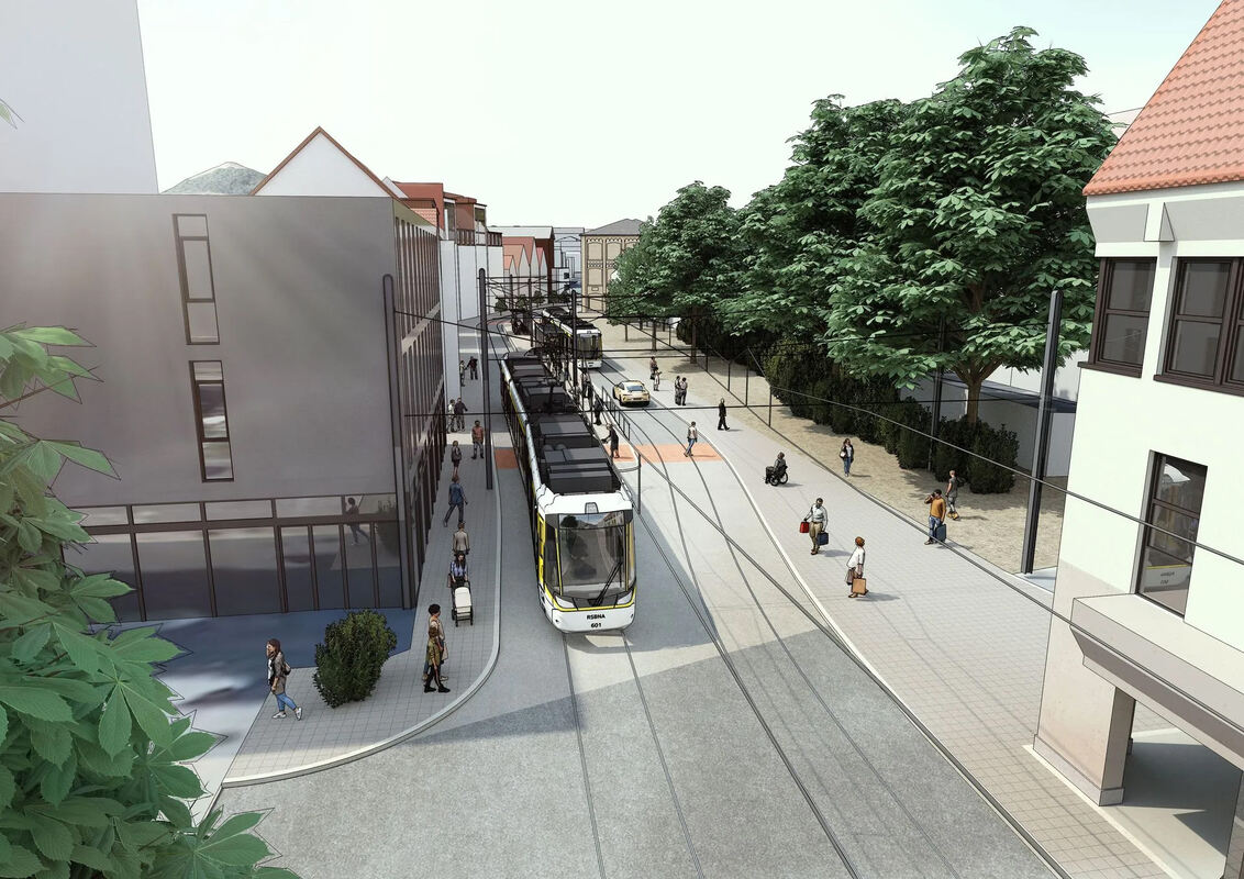 Kurz vorm Finish hat die Gartenstraße den früheren Favoriten von Verwaltung und Gemeinderat, die Lederstraße, noch überholt: Die zweite Standardisierte Bewertung mischte die Karten neu. Beim Nutzen-Kosten-Index (1,20) machte die Gartenstraße vor Honauer Bahn (1,17) und Lederstraße (1,07) das Rennen. Sie ist die kürzeste Verbindung zwischen Haupt- und Südbahnhof (4,7 Kilometer), wenn auch mit der längsten Fahrzeit (7.50 Minuten). Beim Fahrgastpotenzial liegt die Gartenstraße im Mittelfeld (31.000 Personen täglich). Mit gut 140 Millionen Euro Baukosten ist sie die mit Abstand günstigste Option – auch in Bezug auf die Folgekosten. Knapp 20 Millionen Euro müsste die Stadt für ihren Anteil am Trassenbau und für ergänzende Baumaßnahmen aufbringen. Bei der komplexen Ausschleifung am Bahnhof ist sie die am wenigsten invasive Variante. Auch der Listplatz bliebe erhalten. (igl)