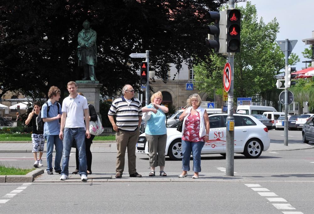 In Reutlingen kommen Fußgänger oft nur bis zur Mittelinsel, wenn sie die Hauptstraßen überqueren möchte. Und müssen bei Rot relativ lange warten.