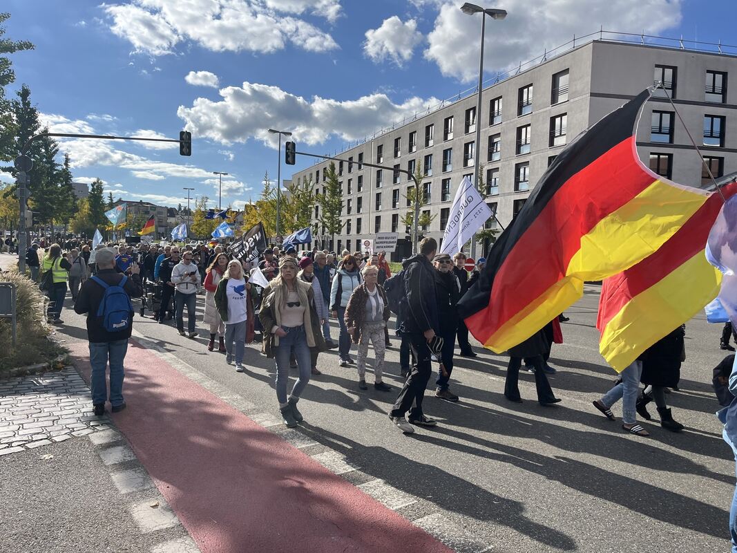 REUTLINGEN. Nach Polizeiangaben rund 300 Menschen sind am Samstagmittag bei bestem Spätherbstwetter durch Reutlingen gezogen und haben für »Friede, Freiheit, den Erhalt des Bargelds und vor allem freie Medien« protestiert. Die Kundgebung, die unter dem Label der Bewegung »Baden-Württemberg steht auf« stattfand, wurde federführend von Kevin Brügmann organisiert. Der 39-Jährige hatte schon die Demos gegen die Corona-Maßnahmen organisiert, später die Proteste der Initiative »Gemeinsam für Deutschland« (GfD).