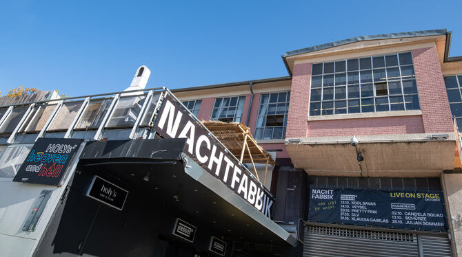 Frisch montiert: Der Nachtfabrik-Schriftzug über dem Eingang der Disco in der Reutlinger Emil-Adolff-Straße.