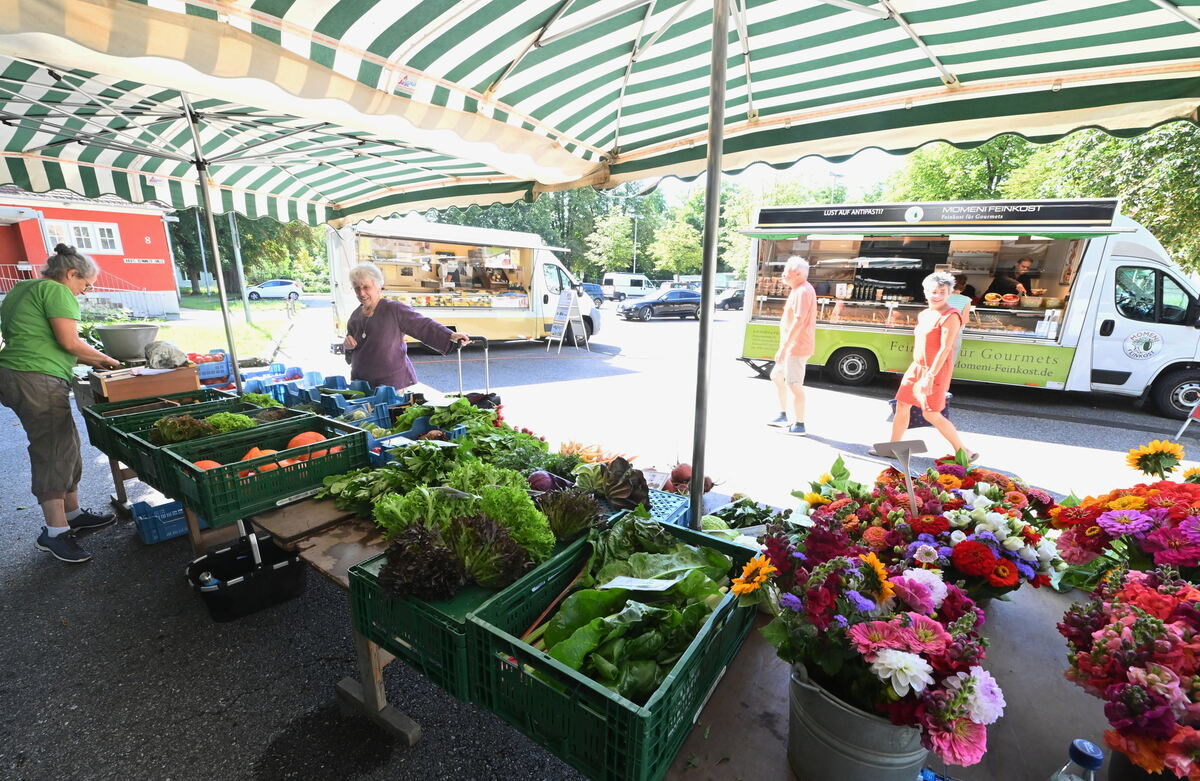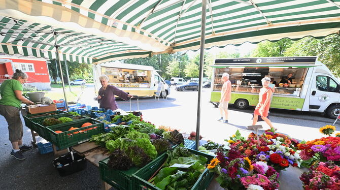 Kleiner, aber feiner Betzinger Wochenmarkt: Die Sperrung der Hoffmannstraße macht den Beschickern Probleme.