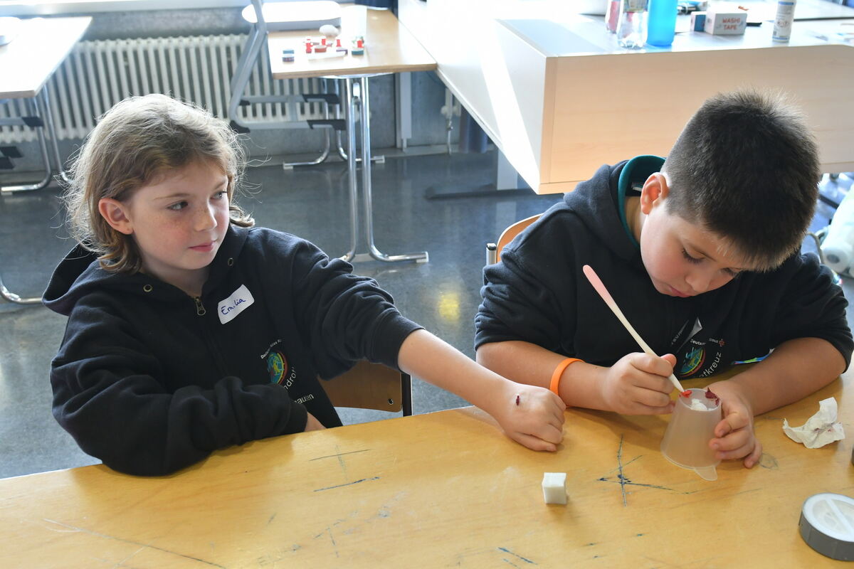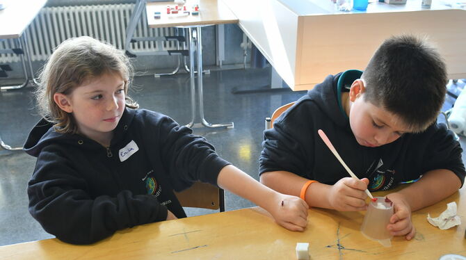 Emilia schaut skeptisch. Kein Wunder, schließlich schminkt ihr ein Rotkreuz-Kamerad gerade eine Schnittwunde auf die Hand. FOTO: MEYER
