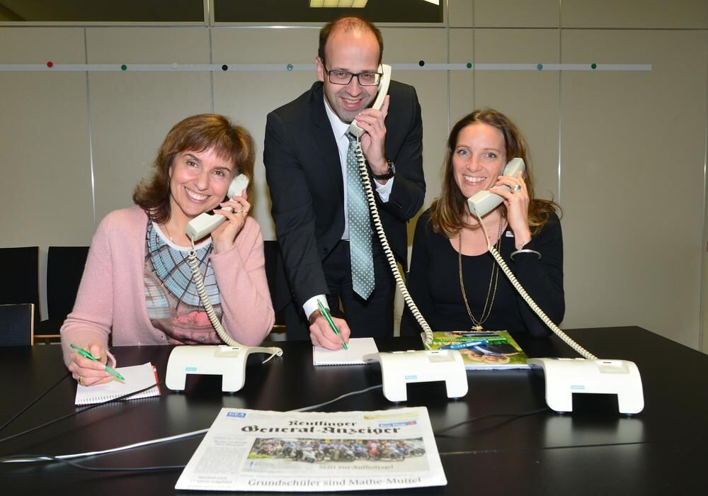 Die Fachleute der AOK Neckar-Alb waren gestern gefragte Gesprächspartner in Sachen neue Pflegeversicherung. An den GEA-Aktionstelefonen von links: Marita Misch, Paul Butz und Daniela Schopp.