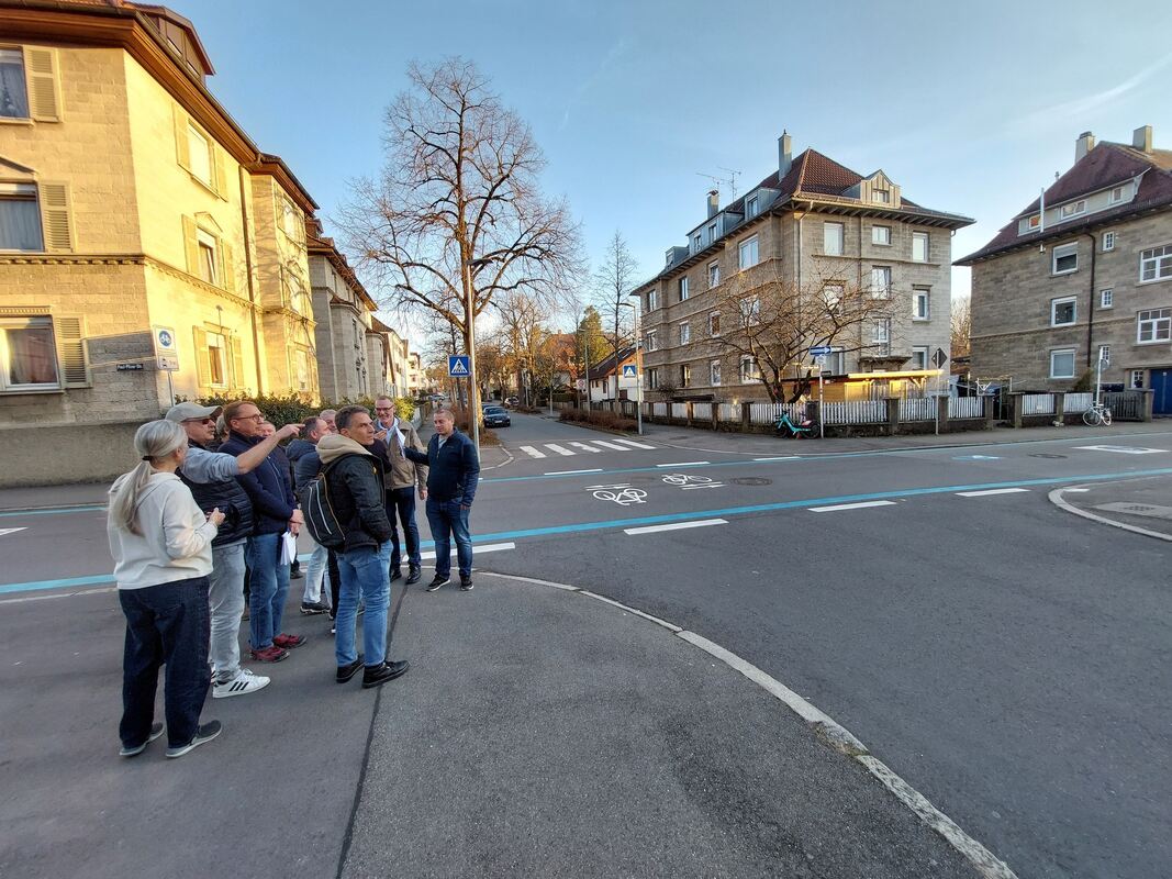 Anwohner und Stadtvertreter an der Kreuzung der Paul-Pfizer- mit der Heinestraße.
