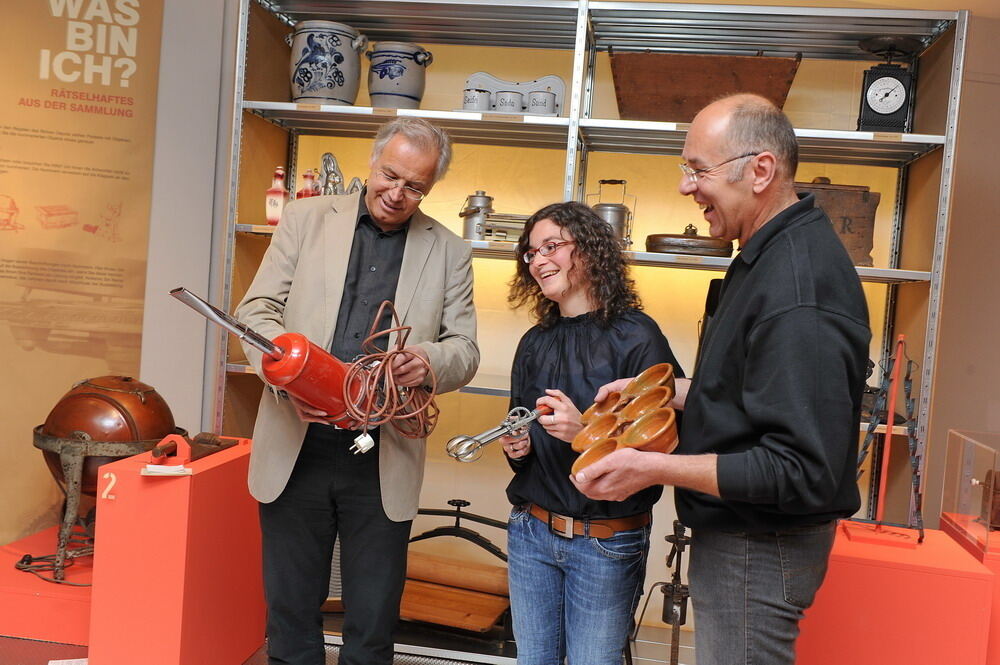 Mussten bei einigen Objekten der neuen Sonderausstellung selbst lange grübeln, um was es sich handelt und wofür es eingesetzt wird (von links): Museumsleiter Dr. Werner Ströbele, Volontärin Marisse Hausser und Mitarbeiter Werner Dukek, von dem die Idee zur Ausstellung stammt.