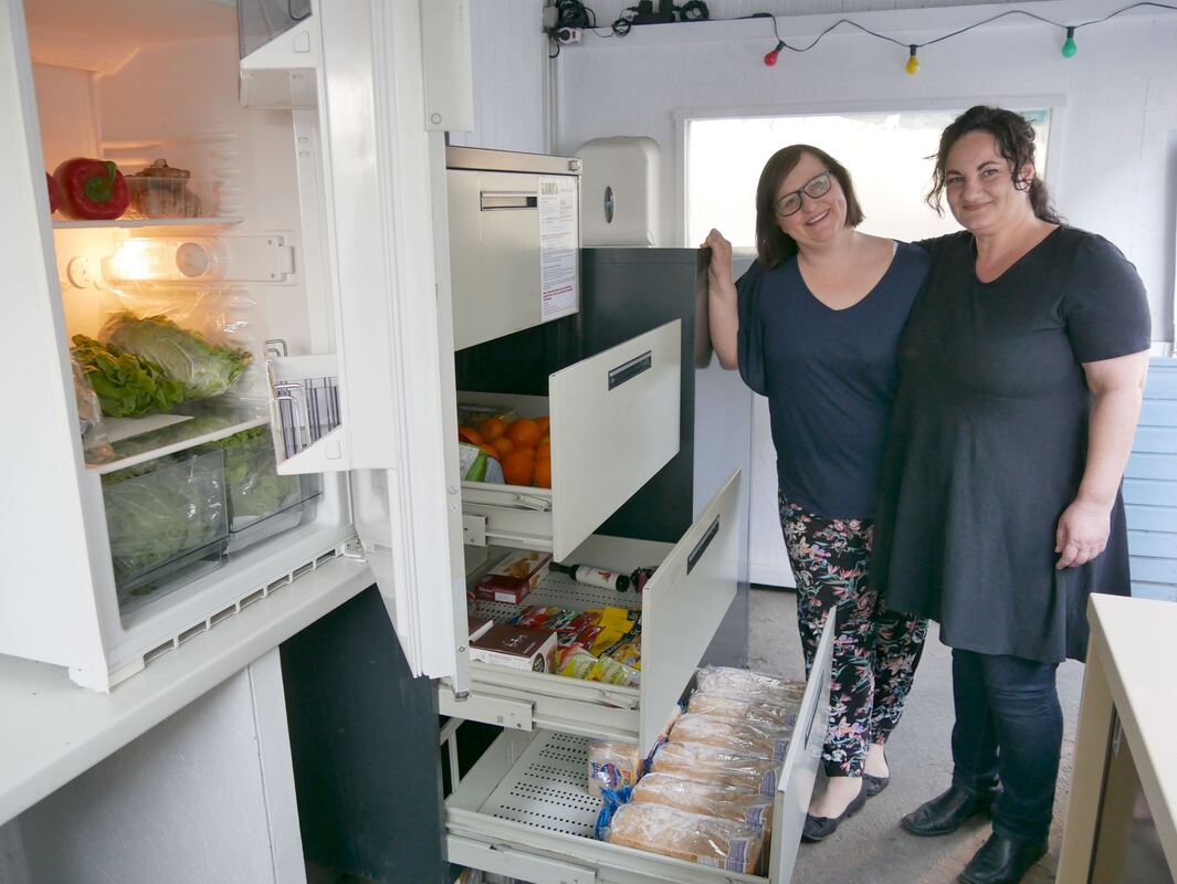 Immer mehr Lebensmittelretter finden den Weg zum Fair-Teiler im Grillhaus des Café Nepomuk: Melanie Streib-Föll (links) und Nathalie Lüddecke freuen sich als Botschafterinnen der »food-sharing«-Initiative sehr darüber, wie gut das Projekt in Reutlingen angenommen wird. FOTO: WURSTER