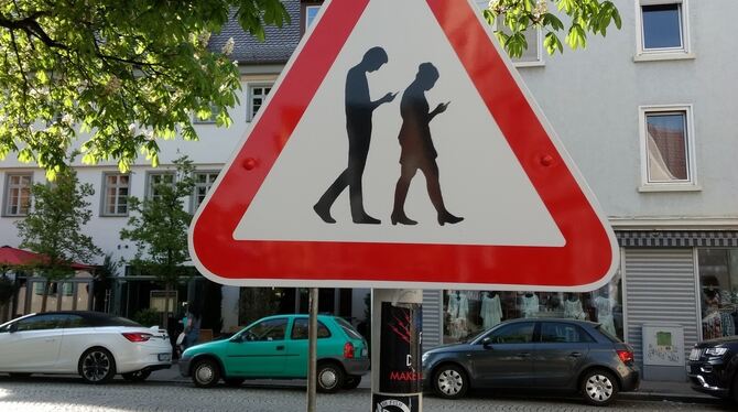 REUTLINGEN. So einen Medienrummel gab es schon lange nicht mehr in Reutlingen. Bundesweit berichten Zeitungen, Radio- und Fernsehsender sowie Internetportale über ein skurriles Verkehrsschild, das vor sogenannten »Smombies« warnt, also Menschen, die auf ihr Smartphone starren.