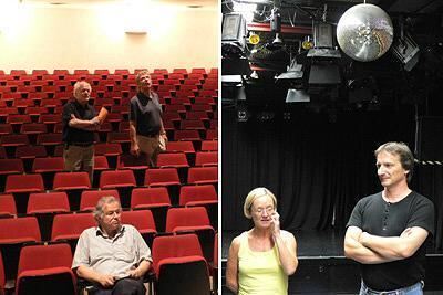 Kulturamtsleiter Werner Ströbele (linkes Bild vorne) und die Gemeinderäte Thomas Ziegler (links) und Kurt Gugel staunen über die sozio-kulturelle Pracht in Pforzheim. Andreas Roth vom Café Nepomuk lässt sich im Zentrum Dieselstraße Esslingen von Geschäftsführerin Sabine Bartsch (rechtes Bild) erklären, wie der »organisierte Chaotenhaufen geballter Inkompetenz« zu seiner Discokugel kam.