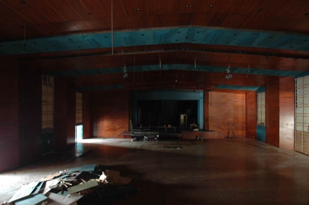 Die Listhalle ist leer geräumt, ihr Abbruch steht unmittelbar bevor. Für die Wandpaneele aus Edelholz – mutmaßlich allerdings Furnier – gibt es bislang keine Verwendung. FOTO: PGS