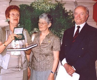 Symbol für grenzüberschreitende Freundschaft: Die Roanner Kulturbürgermeisterin Michèle Calmels überreicht der Reutlinger DFG-Präsidentin Jocelyne Renz (Mitte) die neu geschaffene »Städtepartnerschaftsmedaille«; rechts der Präsident der Deutsch-Französischen Gesellschaft von Roanne, Yves Forestier.