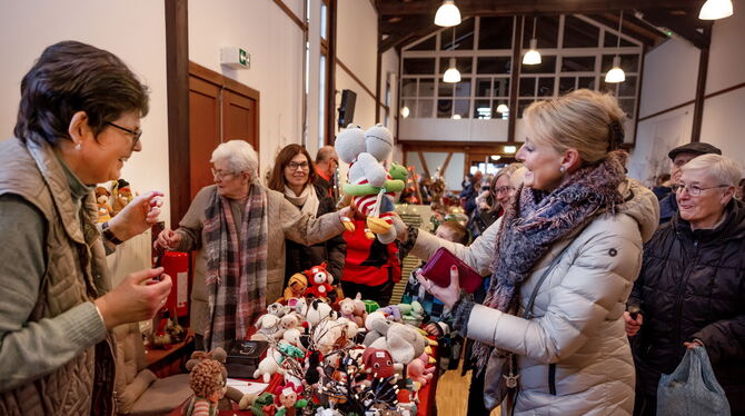 Handgefertigte Stofftiere und vieles mehr begeisterten die zahlreichen Besucher des Weihnachtsmarktes im Gönninger Lokschuppen.