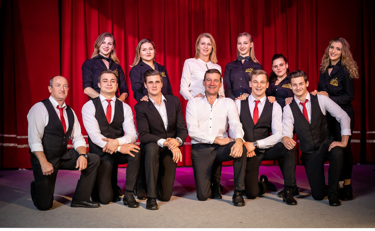 »Relaxx«, die Veranstalter des »Reutlinger Weihnachtscircus«. In der Mitte »ganz in Weiß«: die Chef-Organisatoren Andrea und Michael Sperlich. FOTOS: PRIVAT