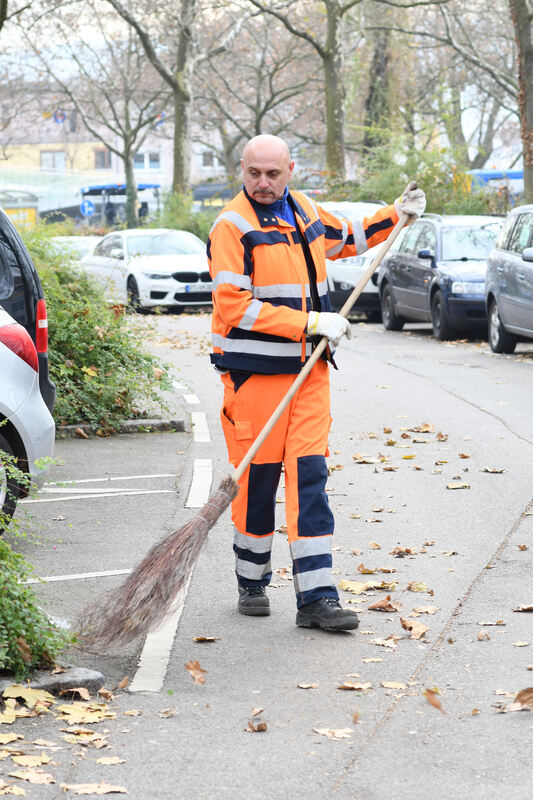 Für Straßenreiniger Mile Kretic bedeutet der Herbst schwere Arbeit. Wochenlang müssen er und seine Kollegen jede Menge Laub wegfegen.