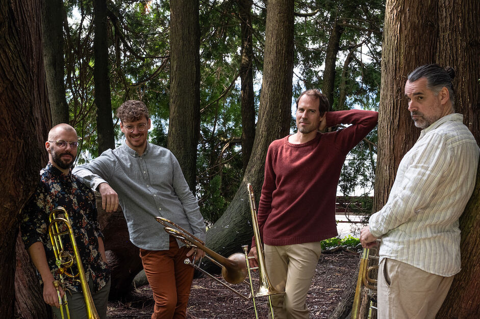 Nils Wogram Vertigo Trombone Quartet. Saxofonquartette sind so alt wie das Saxofon selbst. Aber vier Posaunen? Nils Wogram und seine drei Kollegen produzieren am Freitag, 4. Oktober, 20 Uhr, bei den »Tieftonblech«-Feiertagen im Pappelgarten einen Gruppenklang, der durchaus als einzigartig bezeichnet werden kann.