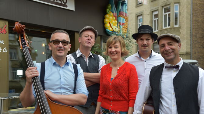 Pariciel. Das Quintett präsentiert sich eher akustisch als elektrisch, eher leise als laut und auch eher swingend als rockig, mit einer Prise Latin und viel französischem Flair. Heute Abend kommt die Band um Sängerin Astrid Krüger um 20 Uhr in den Pappelgarten.